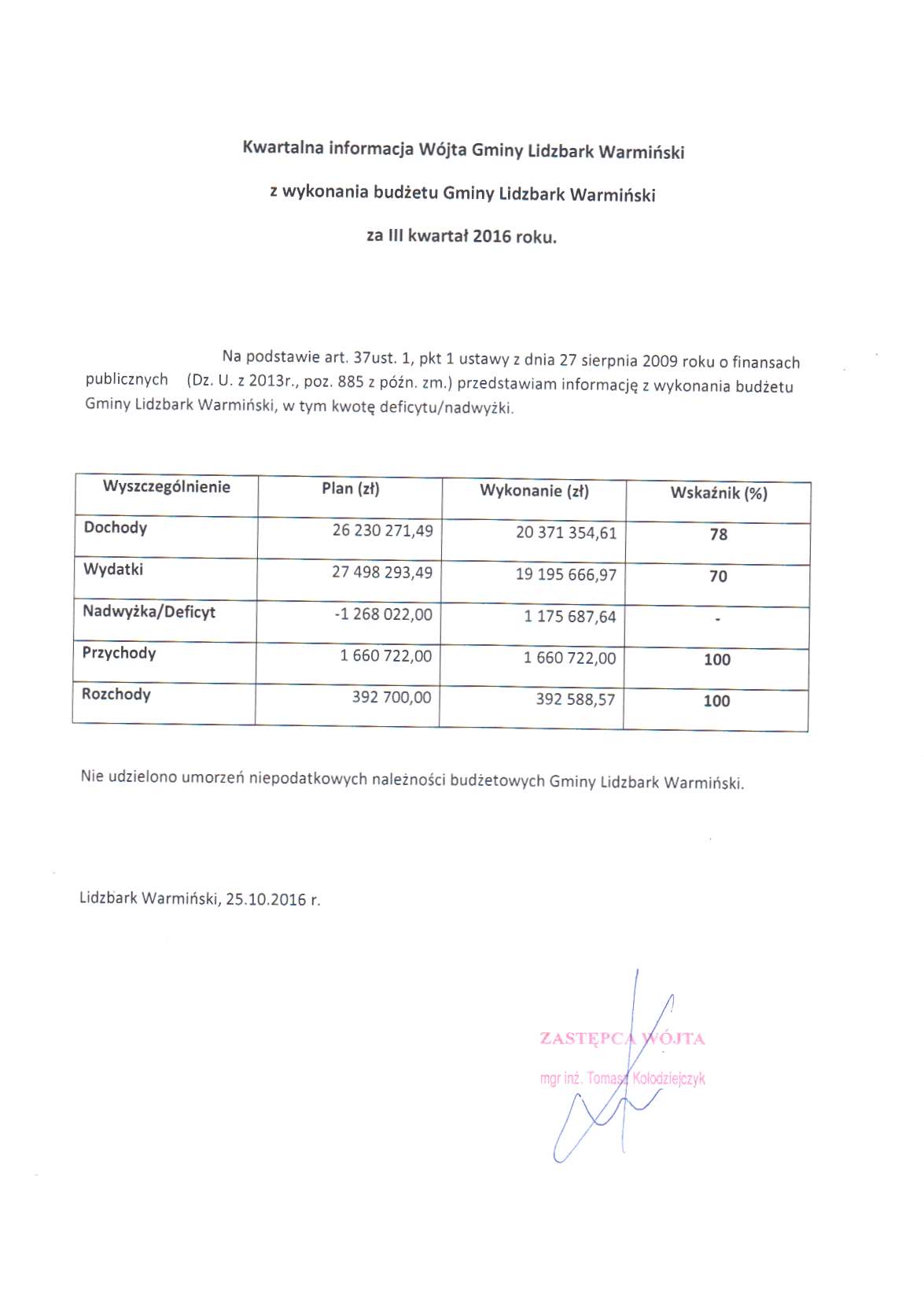 Wersja obowiązująca z dnia 25-10-2016 09:31:17 Drukuj Kwartalna informacja z wykonania budżetu za III kwartał 2016 r. Załączniki Informacja za III kw. 2016 r. format: image/jpeg, rozmiar: 87.58 KB, data dodania: 25-10-2016 09:31:17