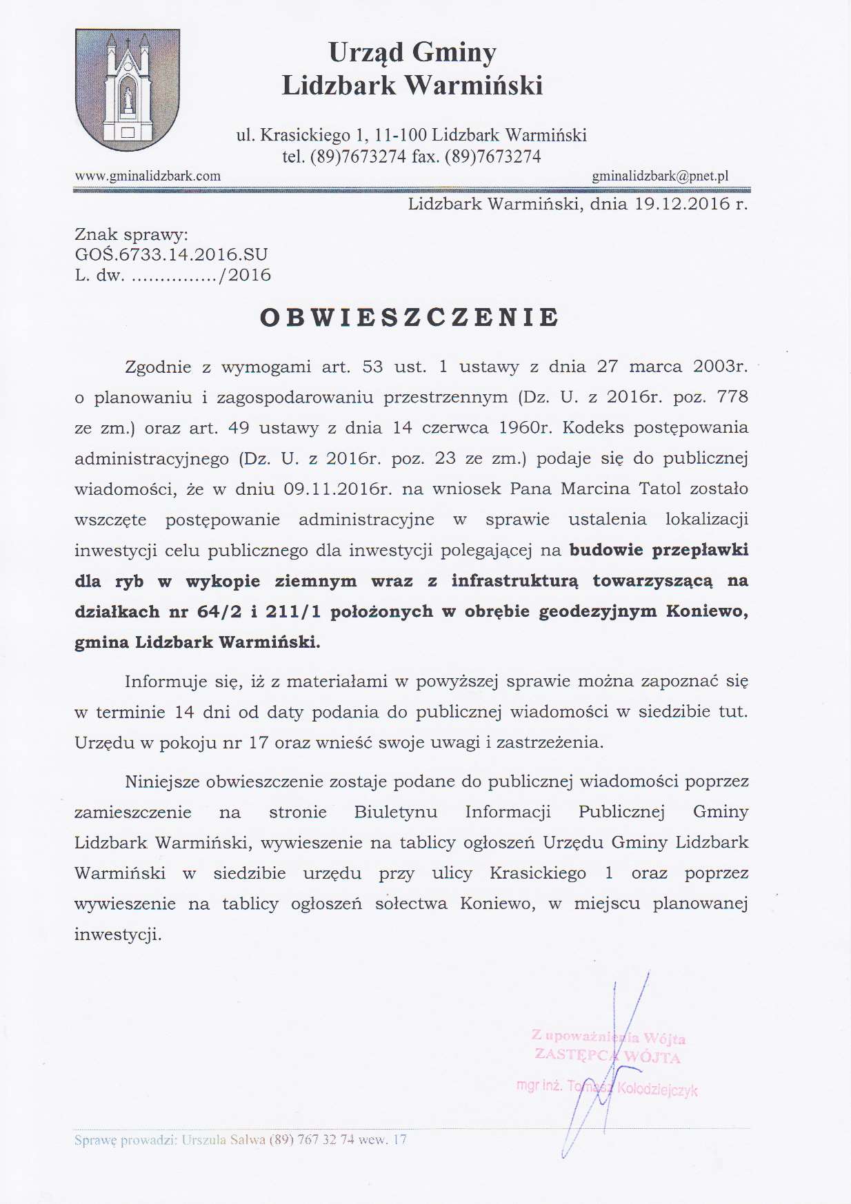 Obwieszczenie z dnia 19.12.2016 r.