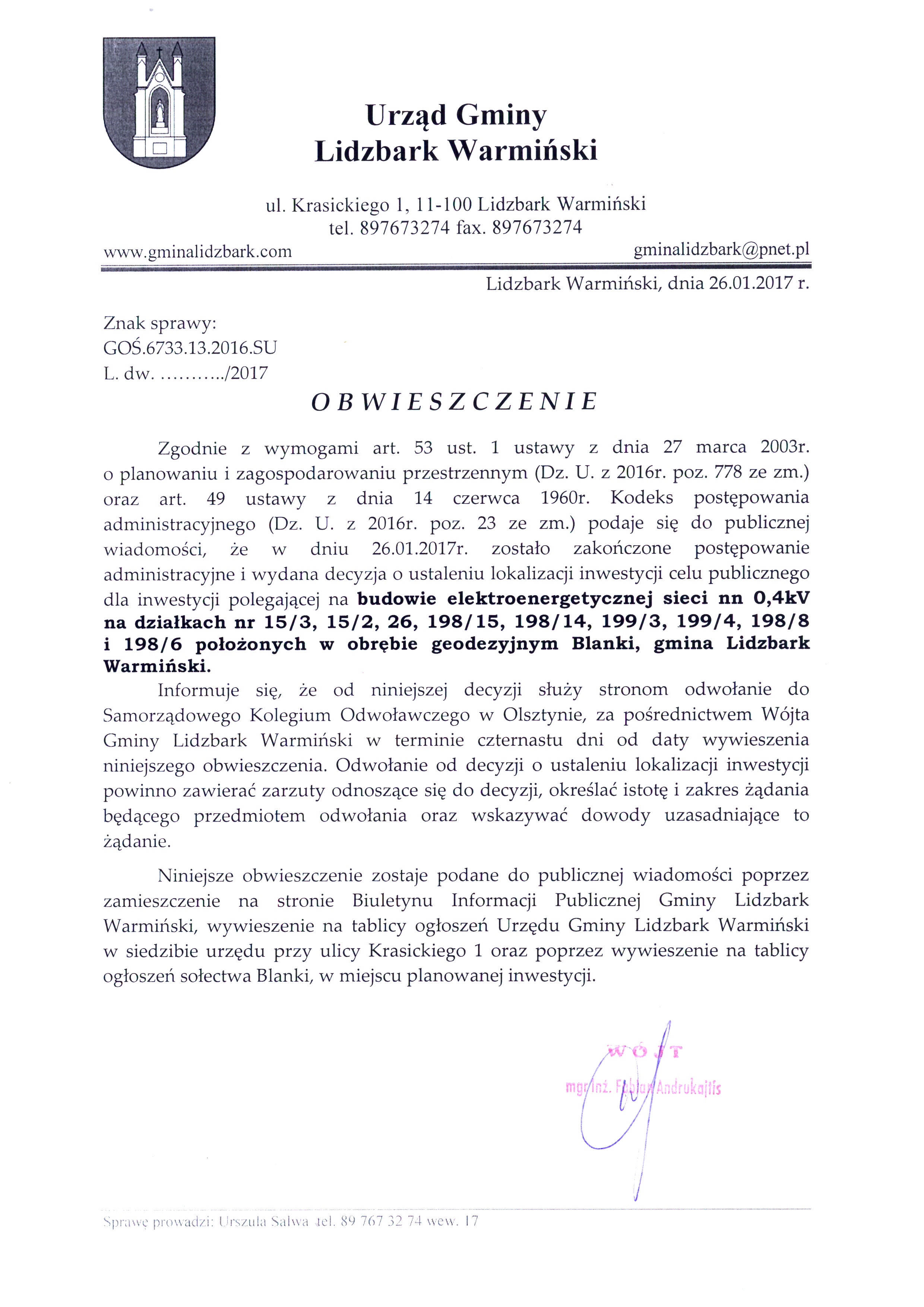 Wersja obowiązująca z dnia 27-01-2017 13:59:23 Drukuj Obwieszczenie z dnia 26.01.2017 r. o zakończeniu postępowania dot. budowy elektroenergetycznej sieci nn 0,4 kV Załączniki Obwieszczenie z dnia 26.01.2017r. format: image/jpeg, rozmiar: 1.55 MB, data dodania: 27-01-2017 13:59:23