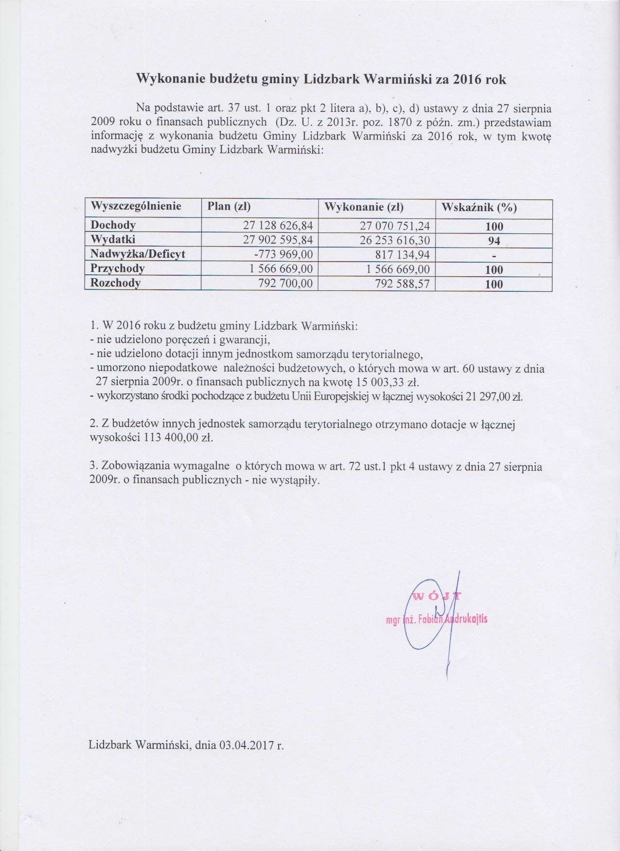 Wersja obowiązująca z dnia 05-04-2017 10:41:54 Drukuj Wykonanie budżetu gminy za 2016 r. Załączniki Informacja za 2016 r. format: image/jpeg, rozmiar: 162.08 KB, data dodania: 05-04-2017 10:41:54